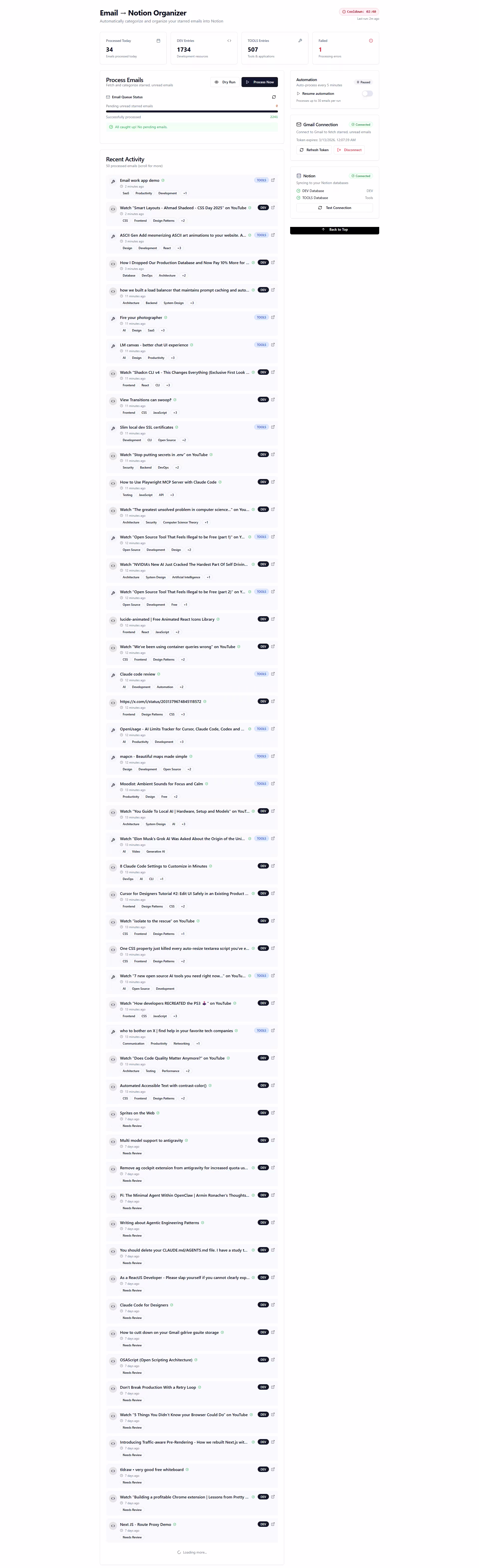 Automatically filters emails into Notion databases for DEV & TOOLS